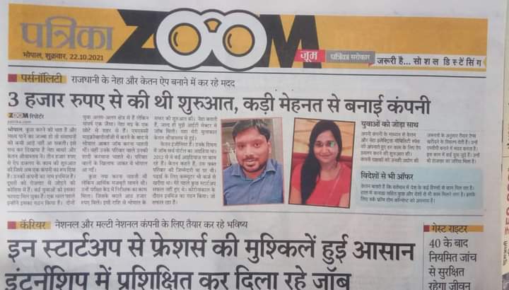 Featured in Patrika for Best Mobile Application velopment