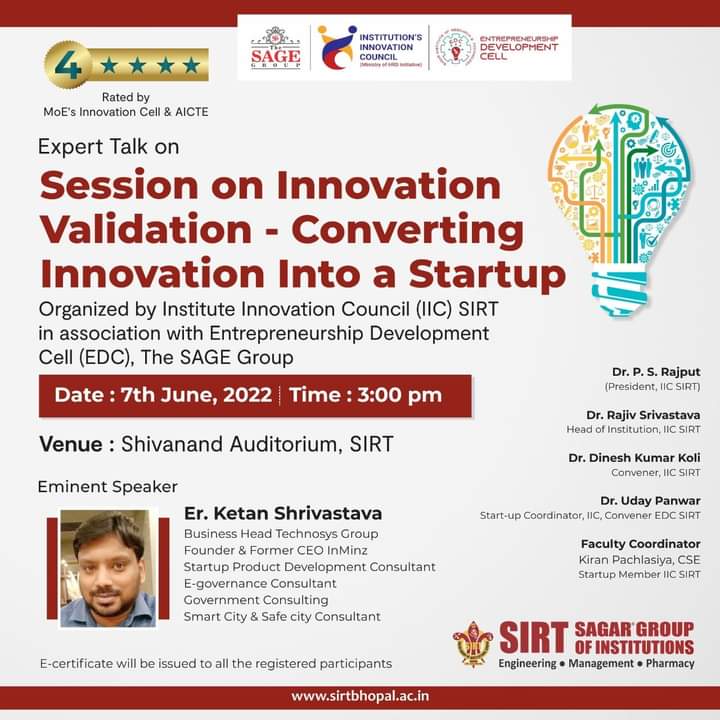Founder InMinz invited at SIRT College Bhopal for Lecture on Entreprneurship & Mobile Application Development